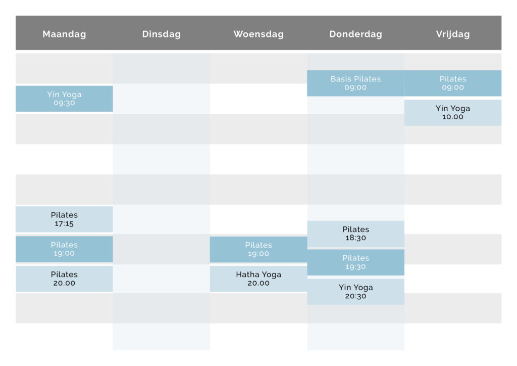 Benieuwd wanneer welke lessen er plaatsvinden? Bekijk hieronder het lesrooster. Welke tijd komt jou het beste uit?